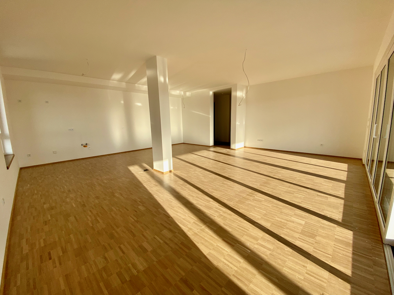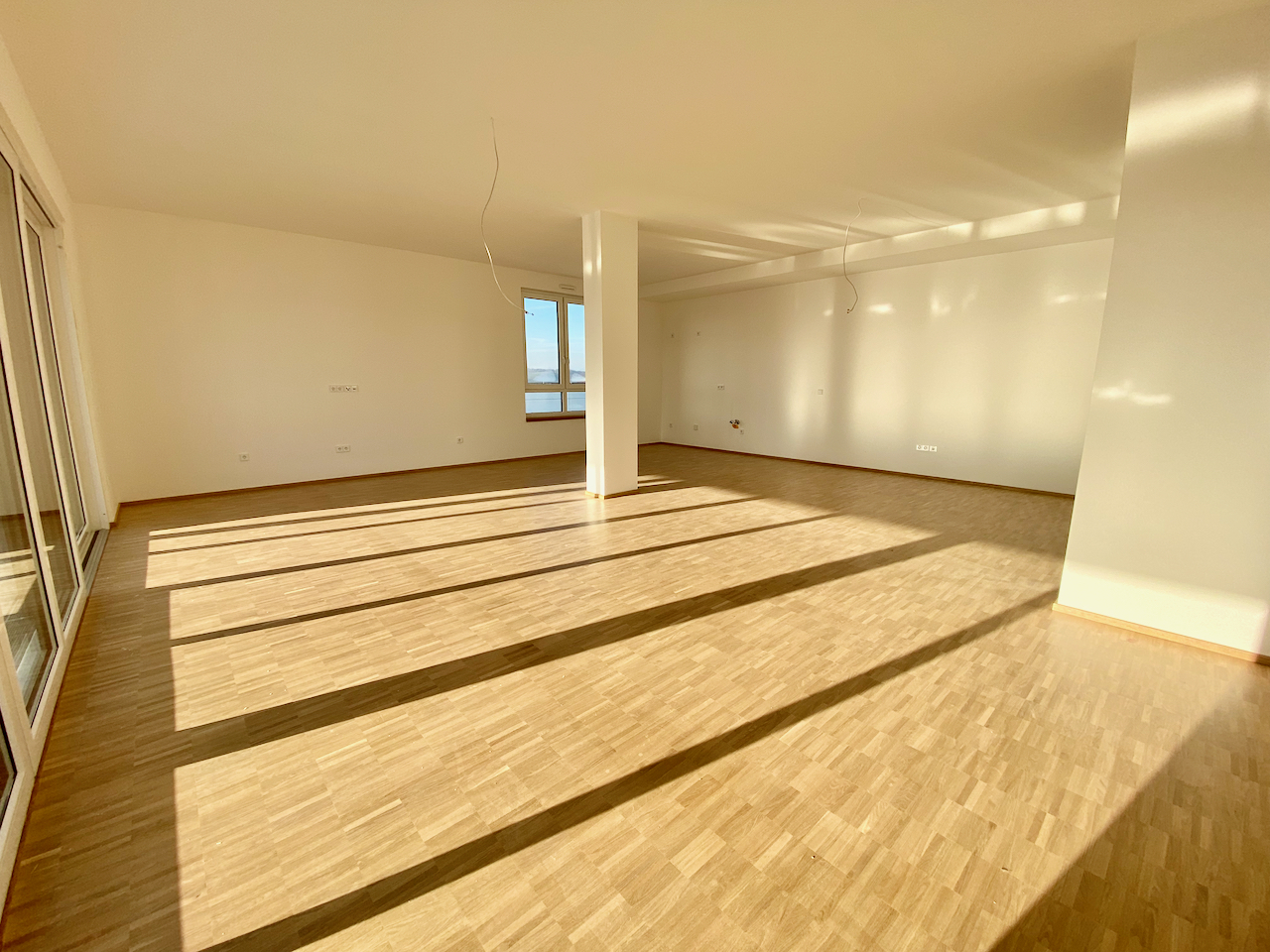 Auf den ca. 144 m² der Wohnung befinden sich der offene Wohn-, Koch- und Essbereich mit Zugang zum Balkon, zwei Kinderzimmer und ein Schlafzimmer, sowie das große Badezimmer, ein kleineres Gäste Badezimmer und ein geräumiger Flur.